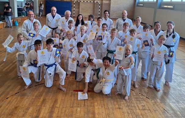Unter der Leitung der Prüfer Renshi Michael, Jens, Willi und Sensei Maike und das neu in der Prüfungskommission Marlin wurden die Leistungen in den Bereichen Kihon, Kata, Kumite beurteilt.